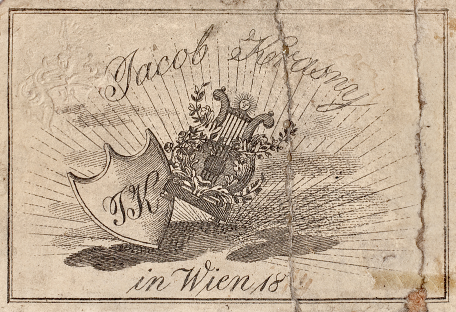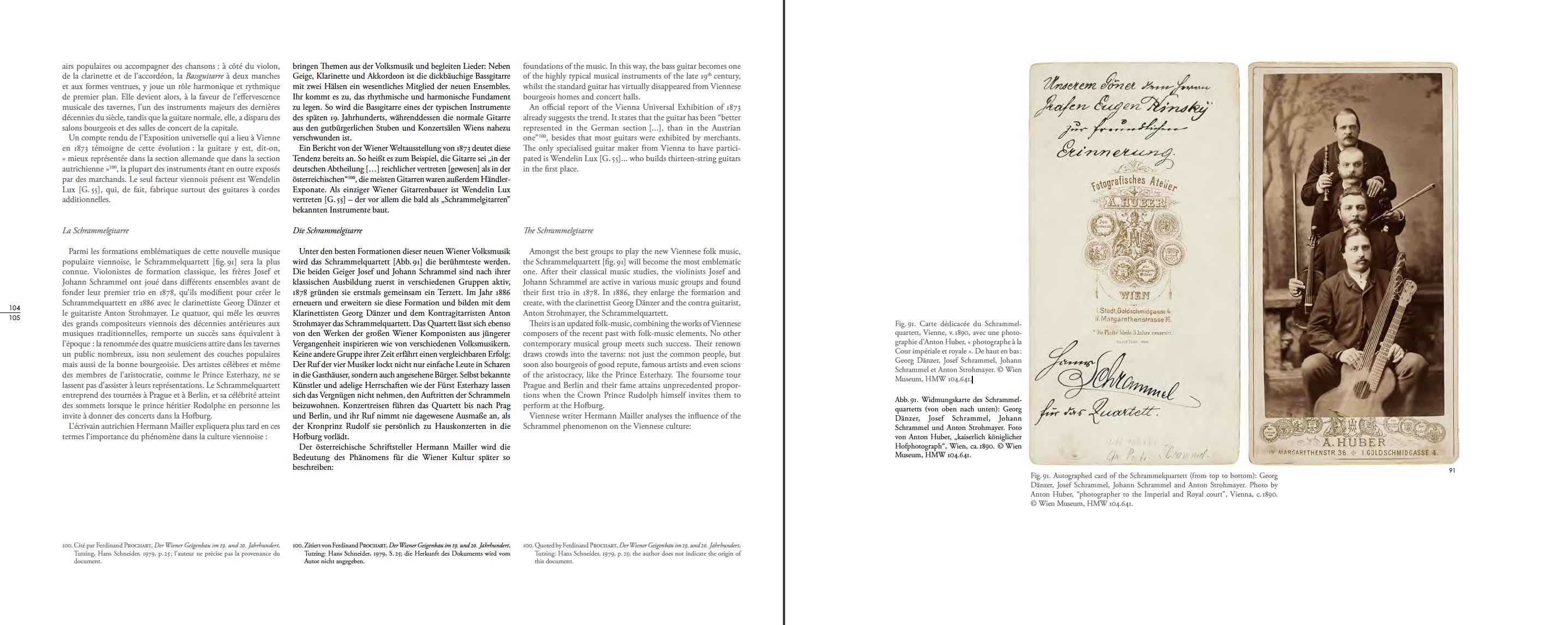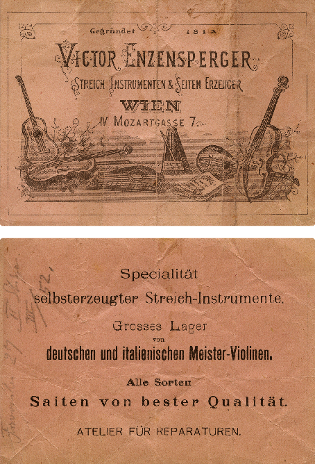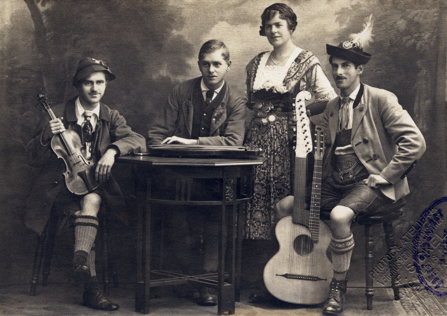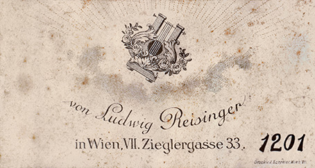 Carte dédicacée du Schrammelquartett, Vienne, v. 1890. De haut en bas : Georg Dänzer, Josef Schrammel, Johann Schrammel et Anton Strohmayer. © Wien Museum, HMW 104.641.