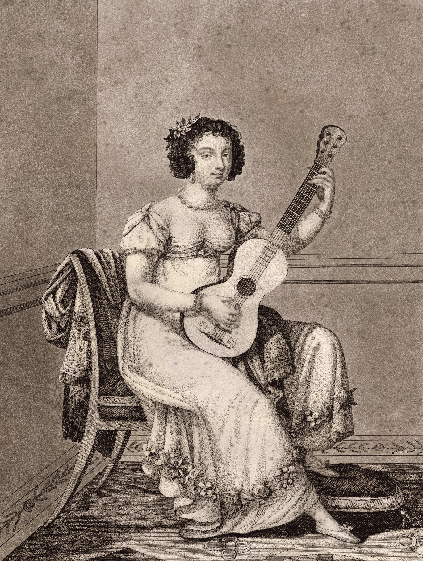 Emilia Giuliani (1813-1850), guitariste et compositrice. Dessin au crayon de Franz Nadorp (1794- 1876), Rome, 1839. © Fürst zu Salm-Salm, Anholt.