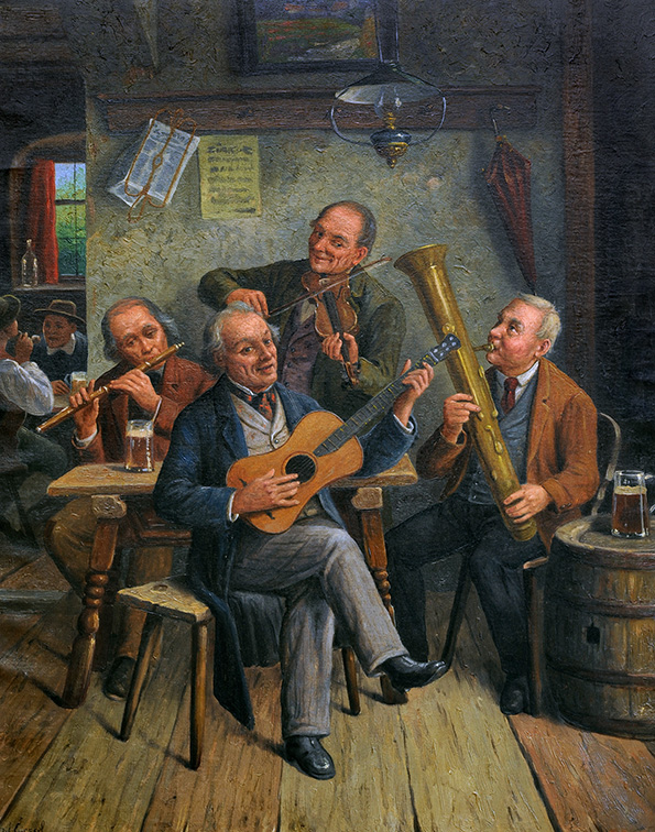 Wiener Musikanten (« Musiciens viennois »), peinture à l’huile de Wilhelm Giessel (1869-1938), Vienne, fin du XIXe siècle. Coll. particulière Hackl.
