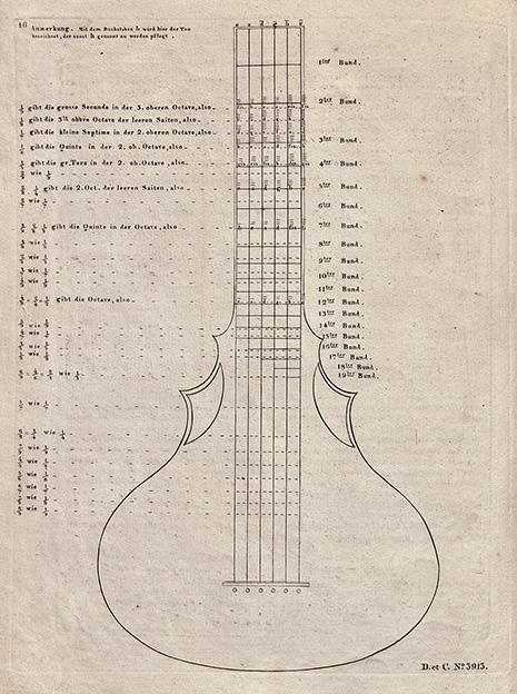 Planche extraite de Versuch einer vollständigen methodischen Anleitung zum Guitare-spielen (« Approche complète et méthodique de la guitare »), t. II, par S. Molitor et R. Klinger, publiée par Chemische Druckerei am Graben, Vienne, 1812. Coll. particulière Hackl.
